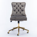 A&A Furniture Office Chair, Velvet Fabric Tufted Button Home Office Chair with Gold Metal Base, Adjustable Office Chair Swivel Office Chair (Grey)